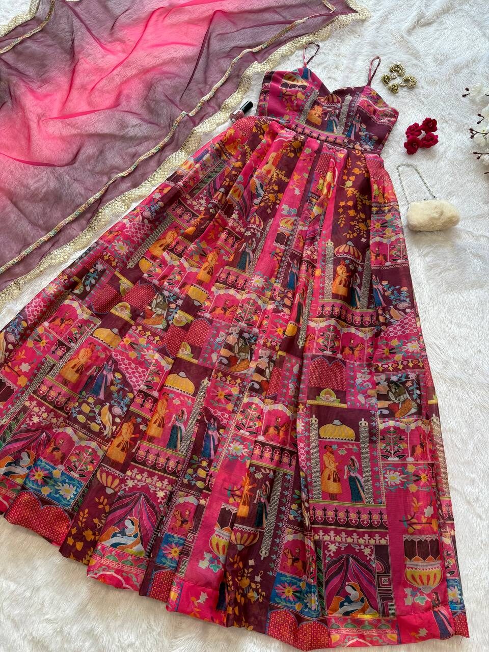* Anarkali Gown * – pure Jimmy organza silk digital printed padded gown with 54+gown length !! 8mtr Flair outfit ! 🔥