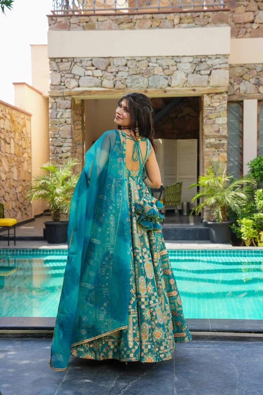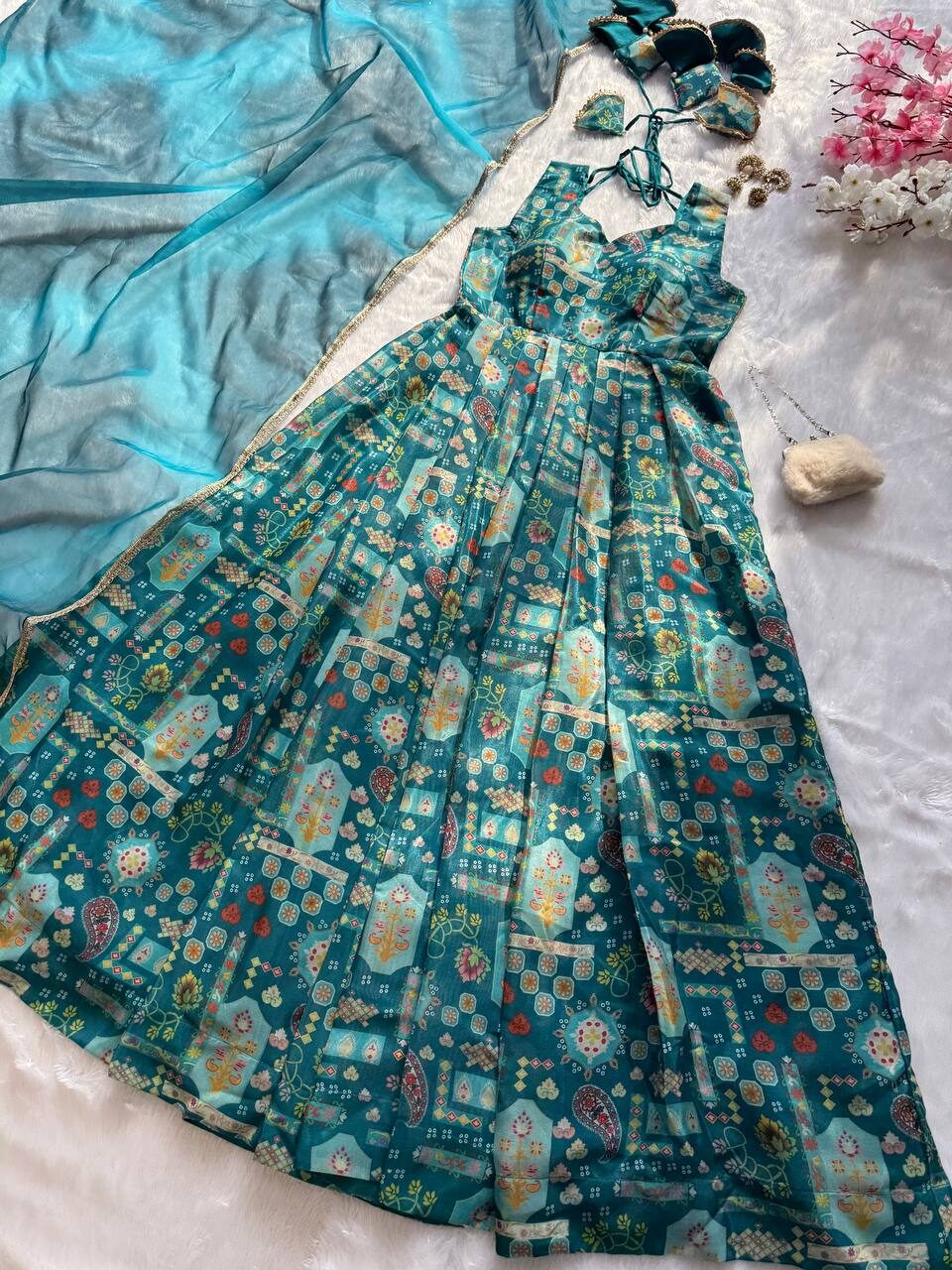 * Anarkali Gown * – pure Jimmy organza silk digital printed padded gown with 54+gown length !! 8mtr Flair outfit ! 🔥